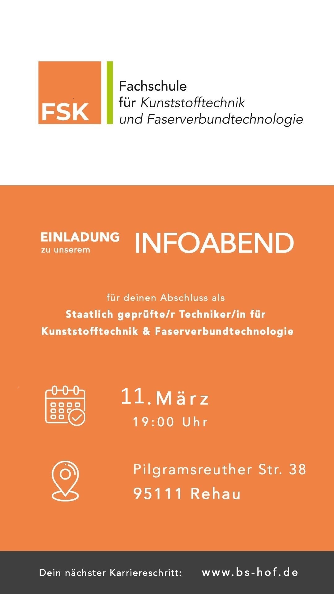 Im Ausbildungsbereich für Kunststofftechnik wurde im September 1994 mit der Gründung der Fachschule für Kunststofftechnik in Rehau eine Lücke geschlossen. Vorwärtsstrebenden, leistungsorientierten Facharbeiterinnen und Facharbeitern vermittelt die Ausbildung eine erweiterte Qualifikation, die nach Bestehen der Abschlussprüfung in der Berufsbezeichnung „Staatlich geprüfter Techniker für Kunststofftechnik und Faserverbundtechnologie“ zum Abschluss kommt.